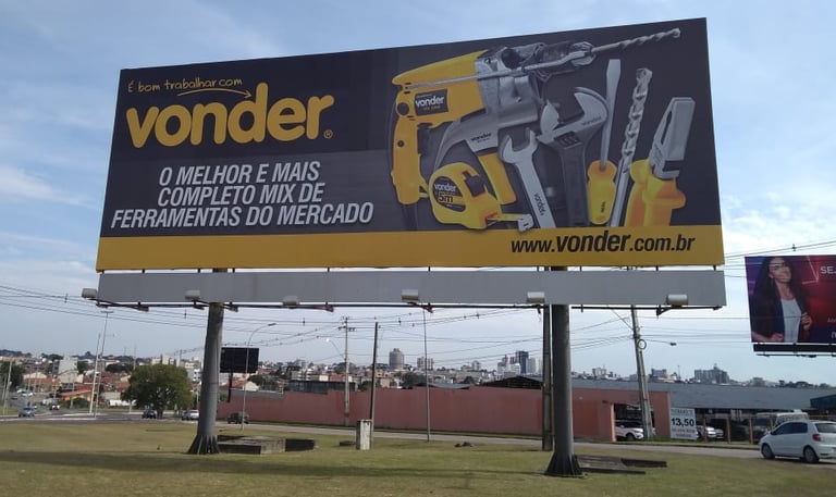 Painéis para veiculação em outdoor. Com lonas resistentes e duráveis.